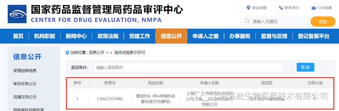 2022年01月26日,中国国家药品监督管理局药品审评中心(CDE)公示,上海3044am永利集团生物医药技术有限公司一款针对中重度哮喘治疗的核心药物LQ036——重组抗IL-4Rα单域抗体雾化液(毕赤酵母)的临床试验申请(IND)正式取得批准(通知书编号:2022LP00124),从IND受理到获批仅用2个月,此间无发补项。
